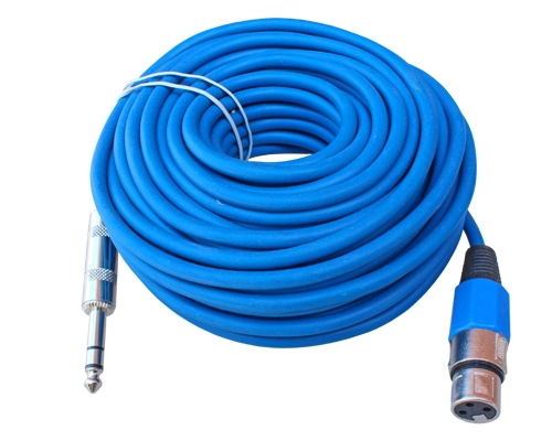 50ft blue cable with a male stereo (TRS) 1/4" plug on one end and a female XLR plug on the other end. Quality balanced and shielded cable. Professional, Flexible and Durable Noise Free Cable. Perfect for connecting a microphone to a 1/4 balanced input or using as a patch cable for rack gear.
