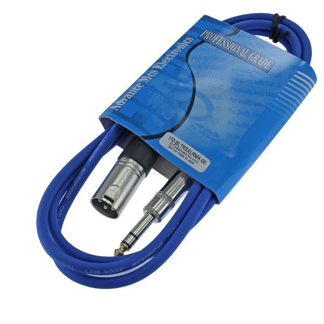 6ft blue cable with a male stereo (TRS) 1/4" plug on one end and a male XLR plug on the other end. Quality balanced and shielded cable. Professional, Flexible and Durable Noise Free Cable. Perfect for connecting a microphone to a 1/4 balanced input or using as a patch cable for rack gear.