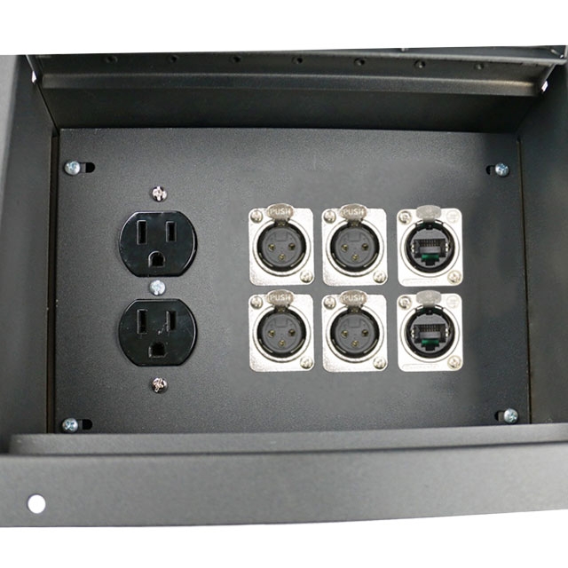 ELITE CORE FBL4+2E+AC RECESSED FLOOR BOX WITH 4 XLRF + 2 ETHERNET + DUPLEX AC WITH BACK BOX